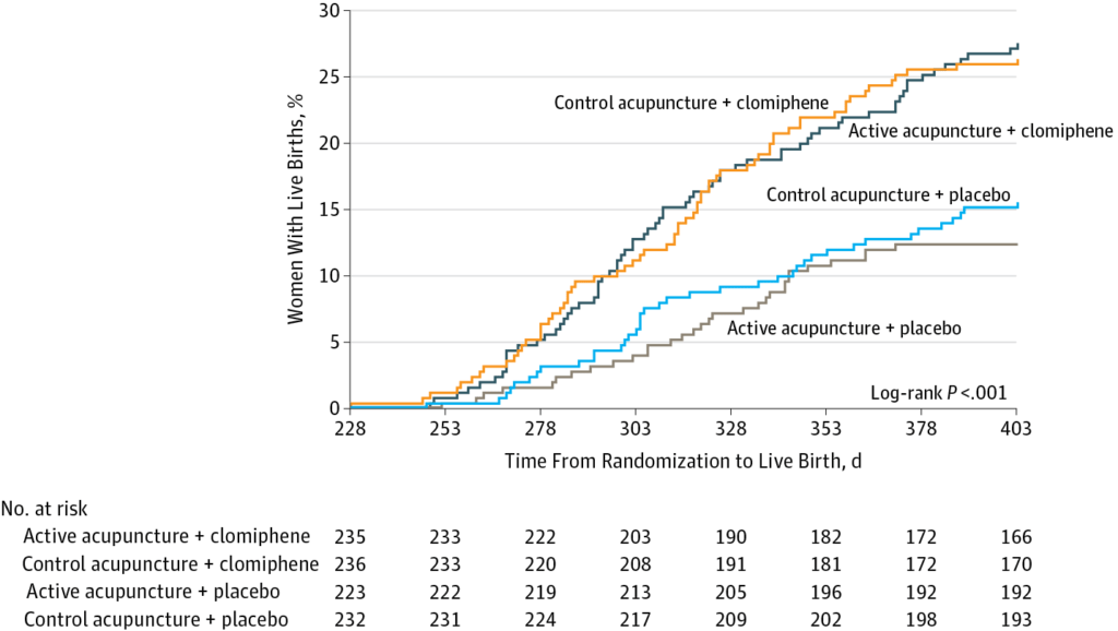 - Wu X-K, Stener-Victorin E, Kuang H-Y, et al. Effect of Acupuncture and Clomiphene in Chinese Women With Polycystic Ovary Syndrome. JAMA 2017;317:2502. doi:10.1001/jama.2017.7217