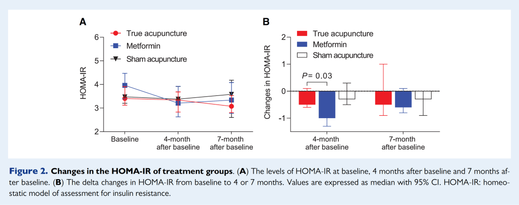 1 Wen Q, Hu M, Lai M, et al. Effect of acupuncture and metformin on insulin sensitivity in women with polycystic ovary syndrome and insulin resistance: a three-armed randomized controlled trial. Hum Reprod Published Online First: 15 December 2021. doi:10.1093/humrep/deab272