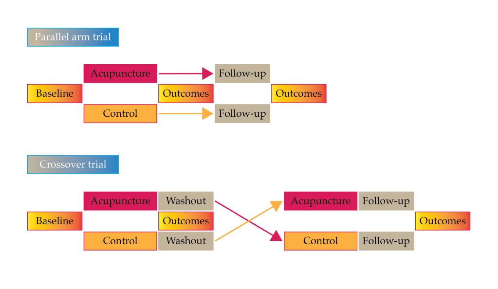 It is unusual in that it uses a crossover design. Crossover designs have a big advantage in terms of statistical power but a big disadvantage if your treatment has a long duration of effect. In acupuncture studies this can be a problem, although it is a desirable one for most patients. It will all depend on the outcome measure used and the length of the washout period. In this case it looks as though the authors only used change figures, so an improvement that was maintained from the active phase into the control phase may not disadvantage the active treatment. I don’t know why I have never thought of this before as a solution to the crossover trial dilemma in acupuncture!