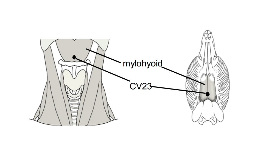 The main points used were CV23 and GB20. That all sounds fine until I tell you that GB20 was inserted 50mm to 90mm in the direction of the laryngeal prominence with the aim of stimulating a feeling of numbness or soreness in the region of the pharynx. It is theoretically possibly to reach the middle and lower pharyngeal constrictor muscles with this angulation from GB20, although that would mean passing just lateral to the zygapophyseal joint between C1 and C2 where you find the vertebral artery running up between the transverse foramina of the same vertebrae. Just anterior to this is the internal carotid artery, so if you miss the vertebral artery, you have a chance of hitting the only other artery to the brain on that side of the body.